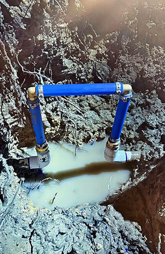 Modern no-dig pipe repair technology for burst or damaged pipes, creating a new pipe within the existing one without extensive excavation.